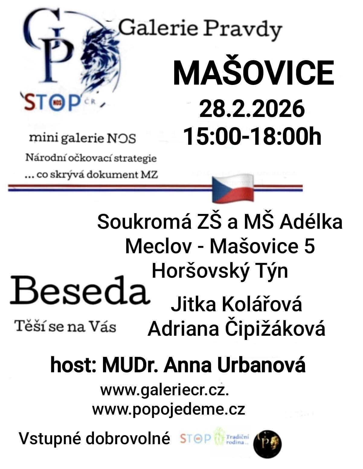 Beseda se bude konat ve škole Adélce v sobotu 28. 2. od 15 hodin do 18 hodin.